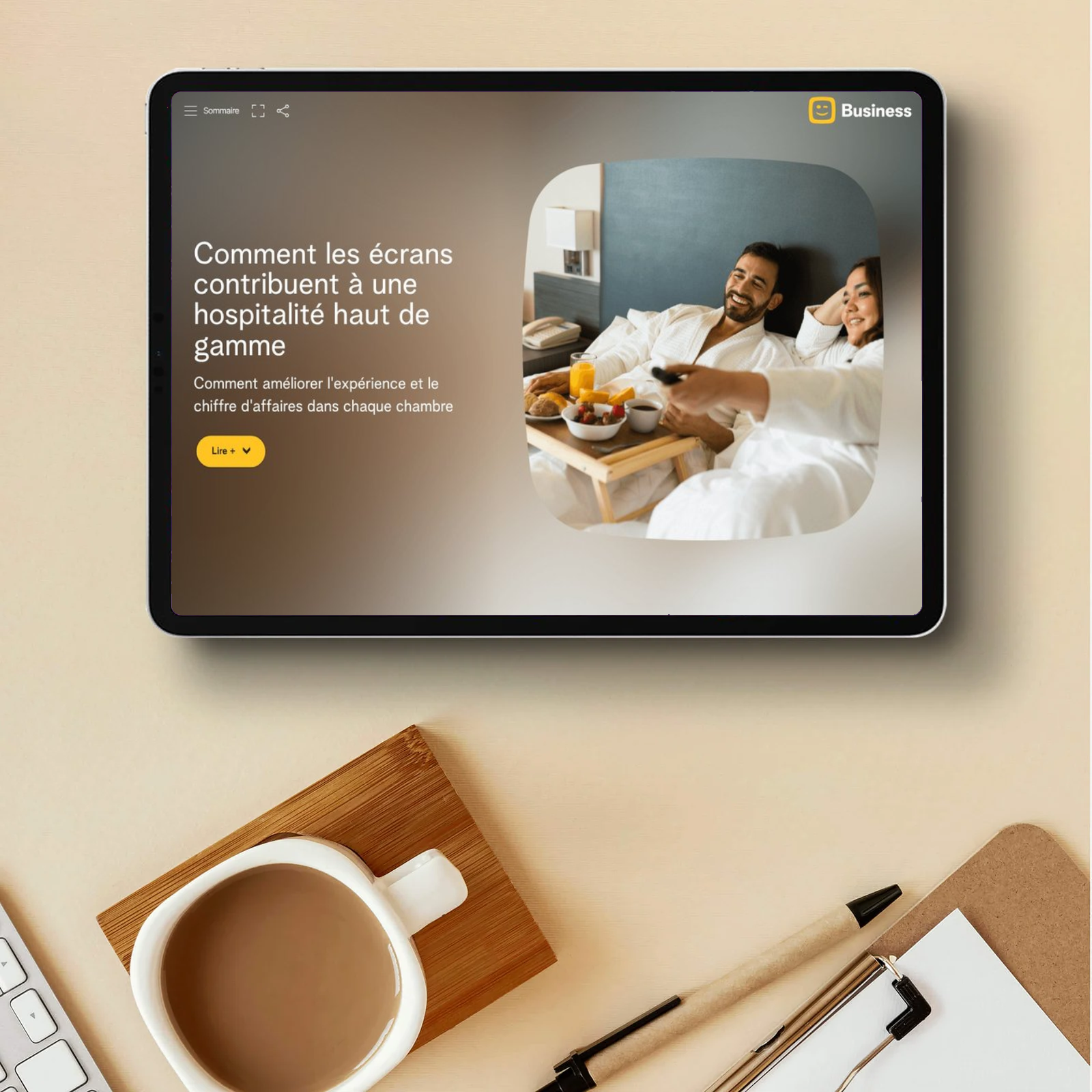 En tant que fournisseur télécom attitré, nous garantissons une expérience optimale des écrans pour vos invités, visiteurs ou résidents, comme à la maison. Avec Tellie, chaque écran dans l’hospitalité peut être utilisé de manière intelligente. Ce e-book montre comment l’écran TV dans chaque chambre augmente le confort et génère du chiffre d’affaires.